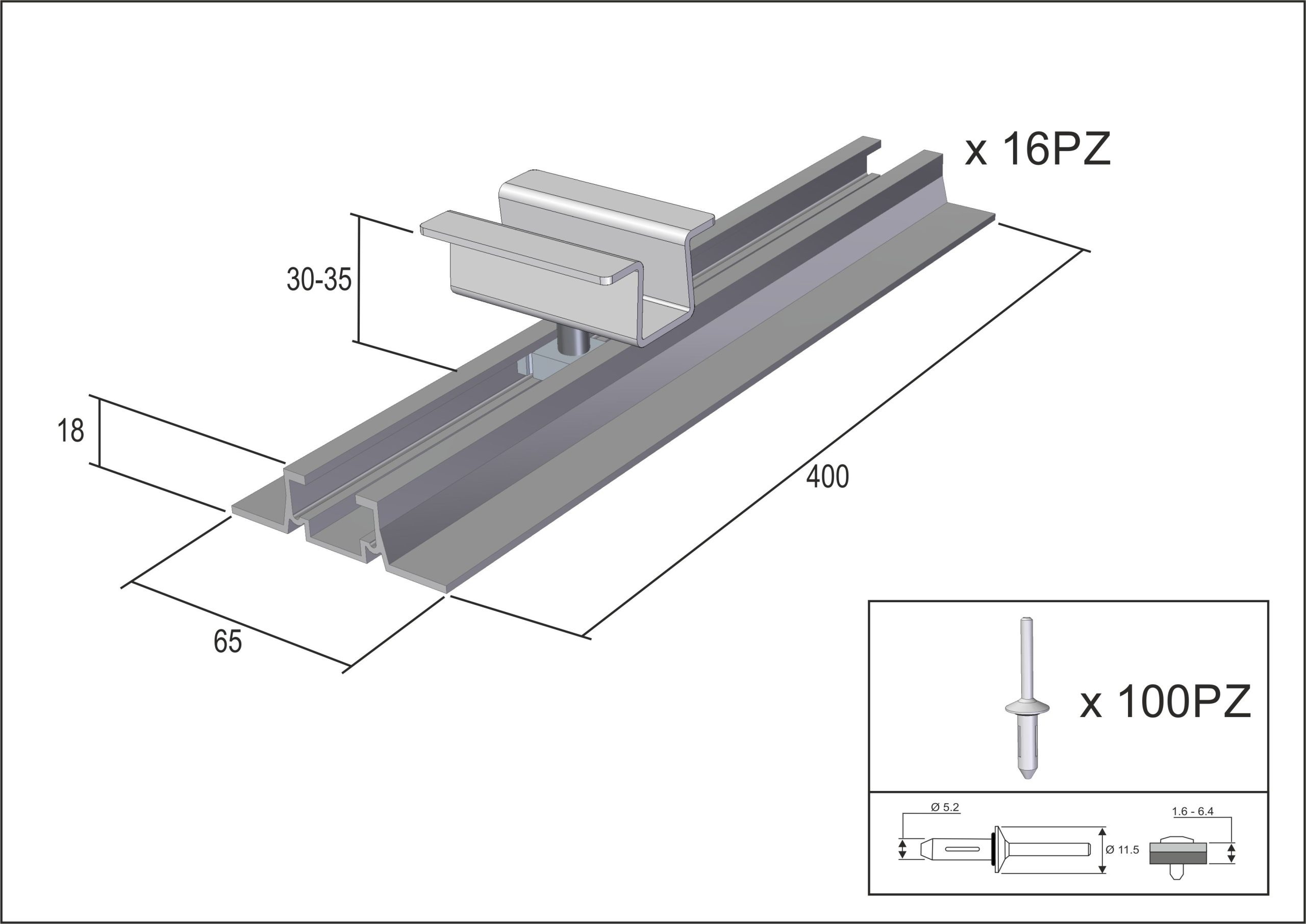 16 kit per fissaggio su tetti in lamiera grecata ideale per impianto fotovoltaico
